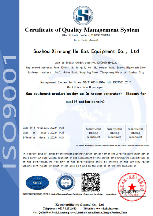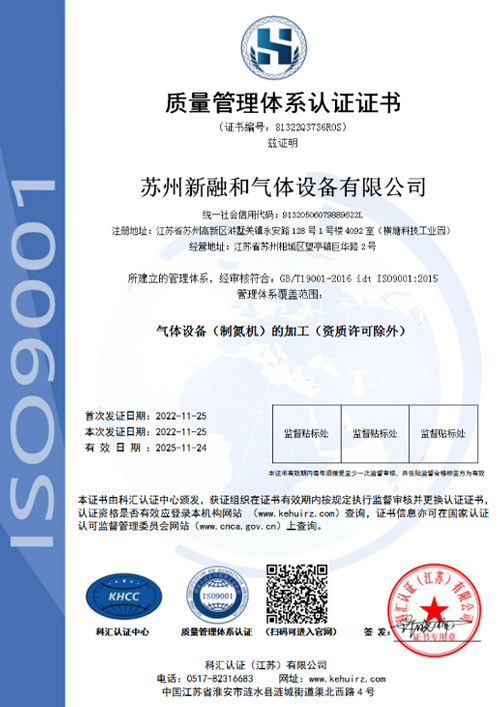 蘇州新融和氣體設備有限公司為民營科技型股份制企業,座落于風景秀麗的蘇州相城望亭開發區,占地面積約6000M2,擁有現代化的工業廠房3000M2,商務智能化辦公場所1200M2。公司主要從事各類工業氣體設備的研制、開發、設計、生產、制造及銷售,如制氮機、氮氣純化、制氧機、氨分解制氫等各類工業氣體發生、制取及分離設備,以及氮、氫、氧、氬、氯、氨、一氧化碳、二氧化碳等各種工業氣體純化設備等,年生產各種氣體設備達300多臺套。